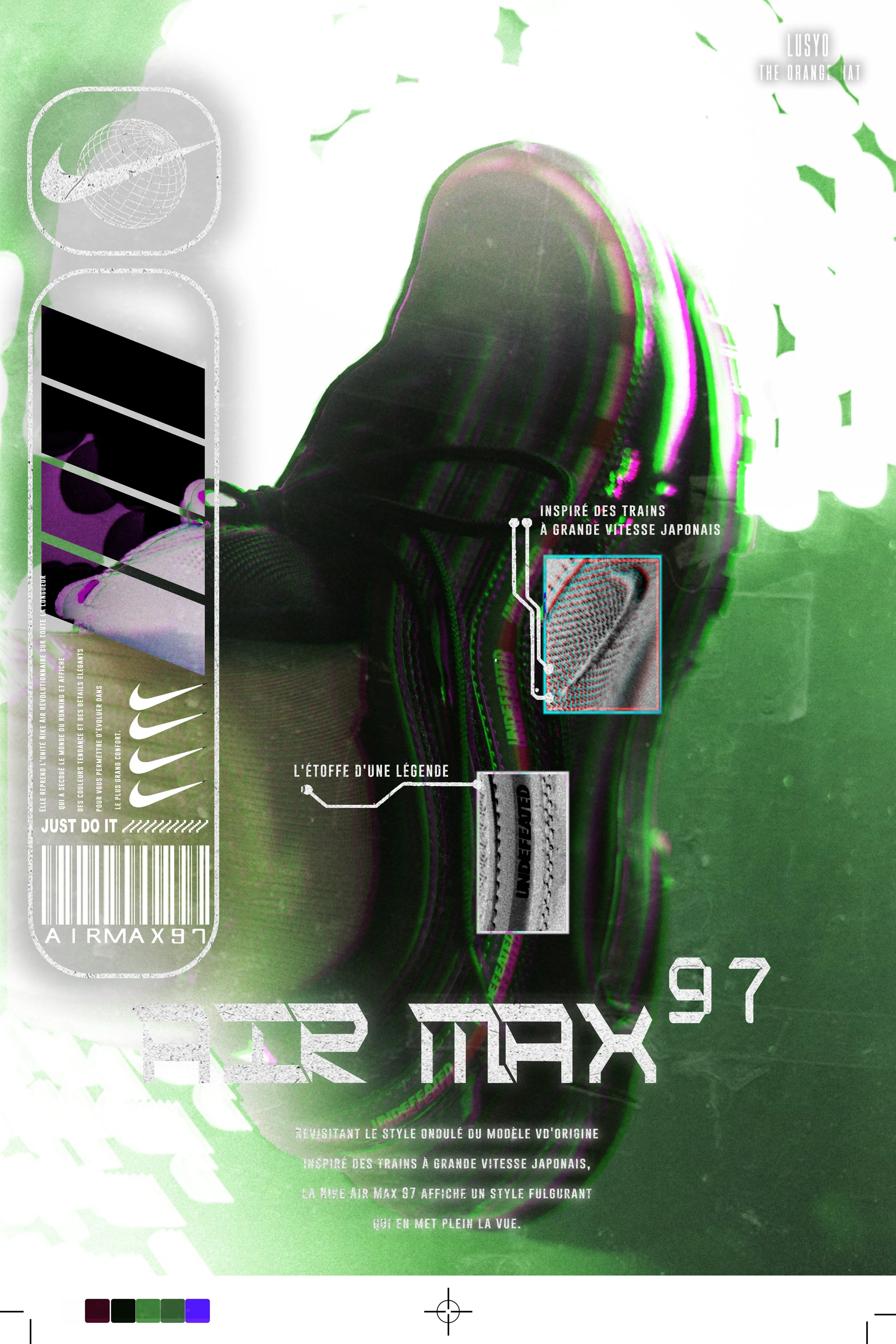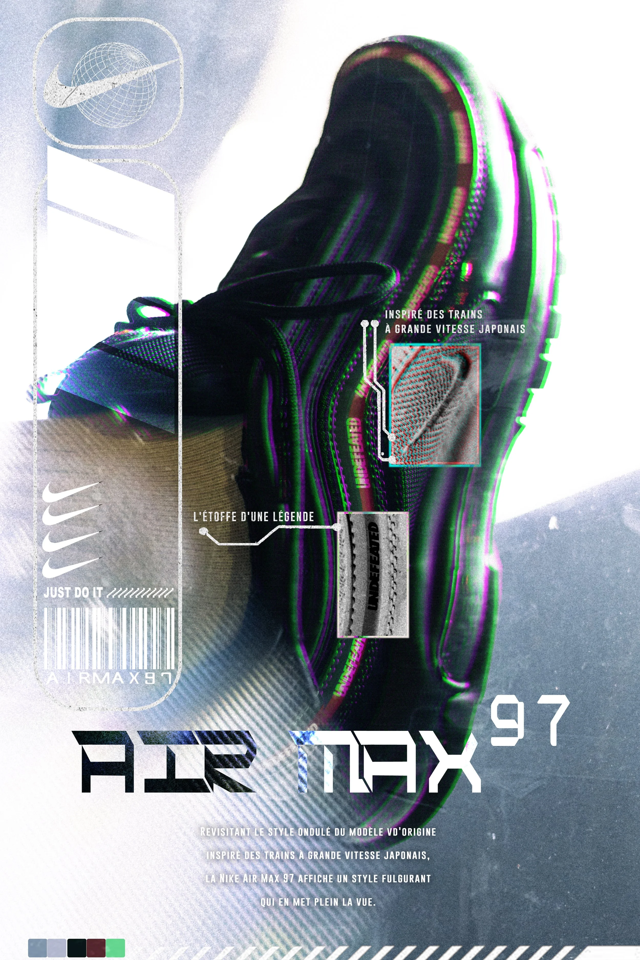 Pour ce projet, j’ai expérimenté mon expertise de photographe avec mes quelques notions de graphisme dans un contrat fictif pour une grande marque de chaussures.